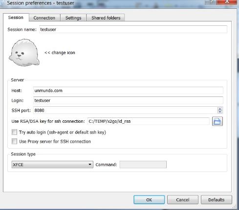6. Finally, include key in x2go setup to start using key