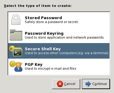 2. Press button New and choose “Secure shell key, press continue”