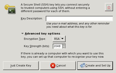 3. Enter key description, encryption type and key strength and choose “Just Create key”